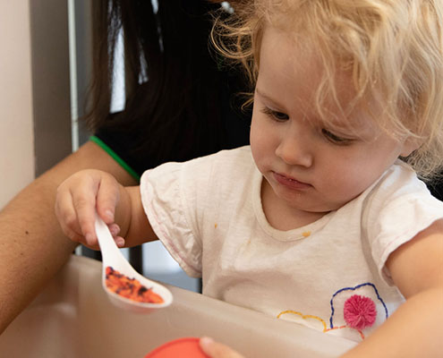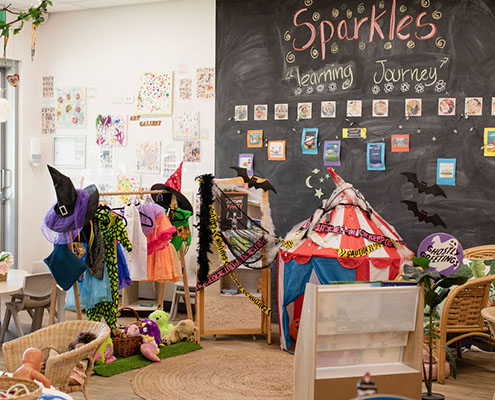 Sparkles room really is a magical land of love and excitement. We welcome only 8 to 10 children per day in this room depending on the age of the children we are supporting. The educators in this space are specially placed for their gentle natures and loving approach to this special pretoddler aged room. The program aims to support them to reach their new and exciting developmental milestones as they graduate from the smaller bubbas space, to the older age group. The room caters for two to three year olds, though serves as a gentle transition for our older babies, preparing them for their next big step to toddler town.